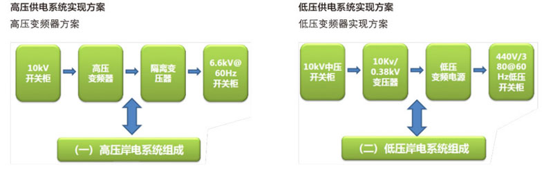 船舶靠岸后如果使用岸電電源的話,電源需要輸出50Hz和60Hz兩個頻率,且電壓可以調(diào)節(jié)來適應(yīng)各國船舶電壓等級的不同。